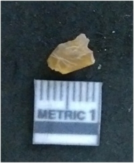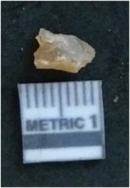 | Description / विवरण | It is a chalcedony flake, with a bulb of percussion on the ventral side. Cortex on one end. |