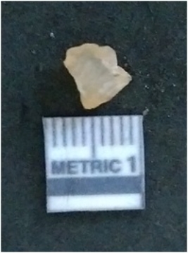 | Description / विवरण | It is a chalcedony flake, with a bulb of percussion on the ventral side. Cortex on one end. |