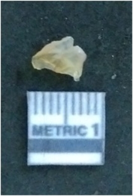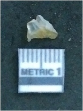 | Description / विवरण | It is a chalcedony flake, with a bulb of percussion on the ventral side. Cortex on one end. |