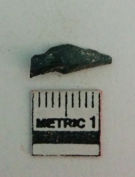 | Description / विवरण | The dark schist piece has flake scars on the surface and sharp edges as a result of flaking. |