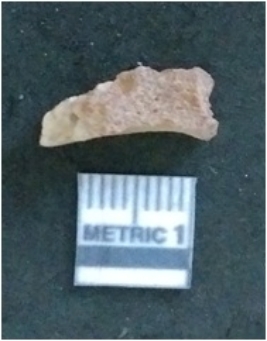 | Description / विवरण | It is a chalcedony flake, with a bulb of percussion on the ventral side. Cortex on one end. |
