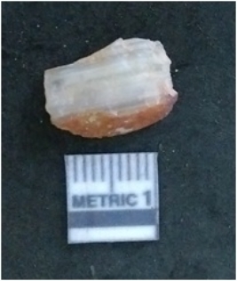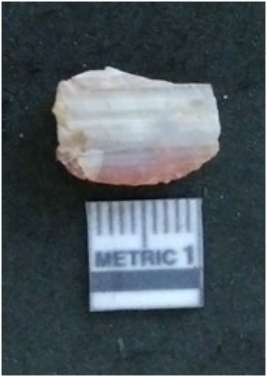 | Description / विवरण | It is a chalcedony flake, with a bulb of percussion on the ventral side. Cortex on one end. |