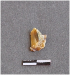 | Description / विवरण | It s a chert fragment, with a striking platform, cortex on one end; there are many flake scars with ripples on them. |