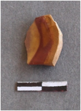 | Description / विवरण | It s a chert fragment, with a striking platform, cortex on one end; there are many flake scars with ripples on them. |