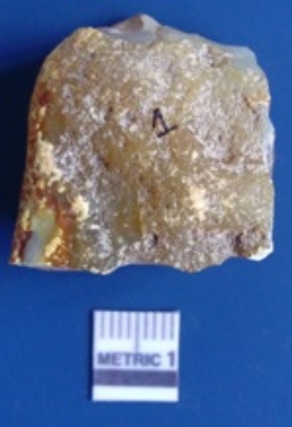| Description / विवरण | The quartz flake has sharp flaked edges and pointed ends as a result of flaking. The piece is semi-transparent in nature with irregular fracture pattern. The piece is roughly triangular in shape and has a prominent bulb of percussion. |