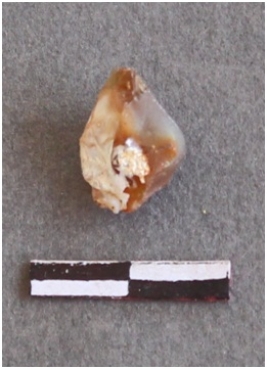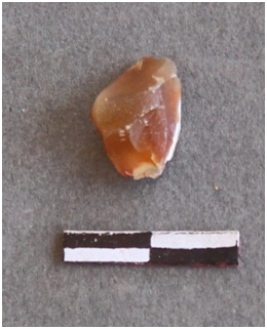 | Description / विवरण | The chalcedony piece is flattish piece, with numerous flake scars on the surface. The edges are sharp as a result of flaking. |