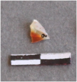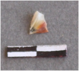 | Description / विवरण | Small chalcedony fragment with flake end and sharp edges. |