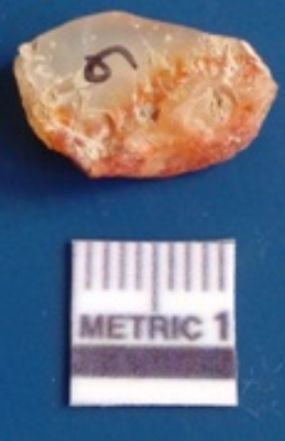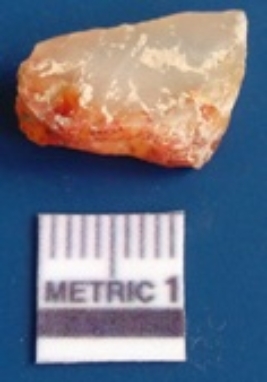 | Description / विवरण | It is chalcedony flake, translucent in appearance. The piece shows sharp pointed ends and flake scars on the surface as a result of flaking. The piece shows a bulb of percussion. |