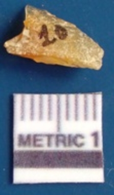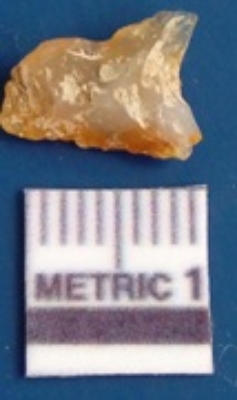 | Description / विवरण | The quartz flake has sharp flaked edges and pointed ends as a result of flaking. The piece is semi-transparent in nature with irregular fracture pattern. The piece is roughly triangular in shape and has a prominent bulb of percussion. |