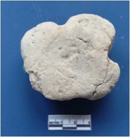 | Description / विवरण | It is a terracotta cake, it is broken, have thumb impression on the surface. It is verified. It is incrusted with soil impurities on the surface. |