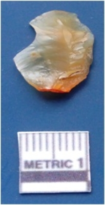 | Description / विवरण | It is a lithic debitage, the flakes and ridges are clearly seen on the dorsal surface. It is light yellowish in color and the bulb of percussion is seen on the ventral surface. |
