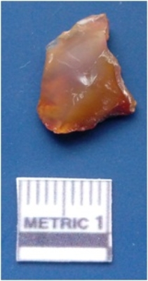 | Description / विवरण | It is a lithic debitage, the flakes and ridges are clearly seen on the dorsal surface. It is brownish in color. |