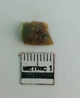 | Description / विवरण | Jasper is a cryptocrystalline piece with cut edges as a result of flaking. |