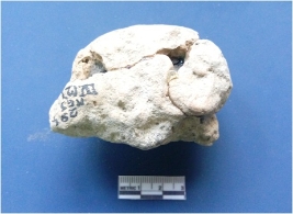| Description / विवरण | It is a terracotta lump. It is well fired. Irregular in shape. It is broken and rejoined by using adhesive. It has excess of impurities present on the surface. |