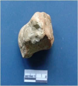 | Description / विवरण | It is a terracotta lump. Thumb impression are visible on the surface. It is well fired. Irregular in shape. It has excess of impurities present on the surface. |