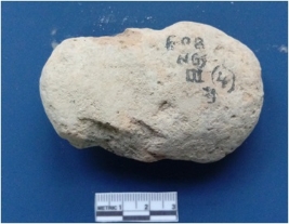 | Description / विवरण | It is a terracotta cake. It is broken. It has thumb impression on the surface. It is verified. It is incrusted with soil impurities on the surface. |