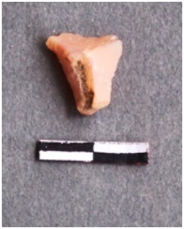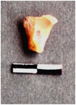 | Description / विवरण | The fragment have bulb of percussion and sharp edges, the fragment is carnelian and red piece. |