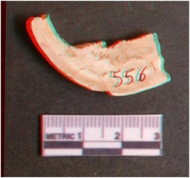 | Description / विवरण | It is a chank slice with sharp edges and flat broad end. The piece is pale white in colour and a part of shell object manufacture debitage. |