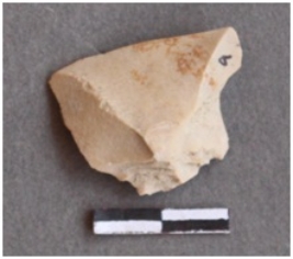 | Description / विवरण | The chert piece is roughly pointed with sharp edges and flaked ridges. |
