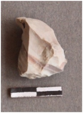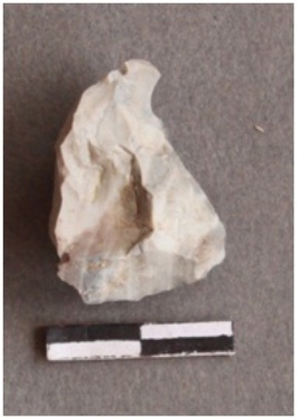 | Description / विवरण | The chert piece of grey coloration with numerous flakes on the surfaces, wegatine bulbs of percussion is visible. |