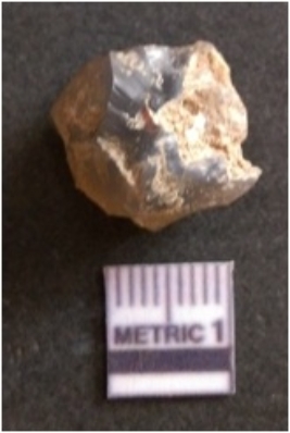 | Description / विवरण | This is a core flake, flakes scars are seen on the surface with one small fraction of cortex. Translucent. |