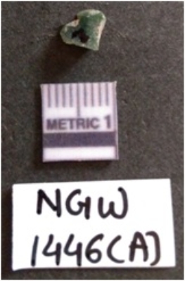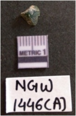 | Description / विवरण | This lithic waste is a thin flake with prominent bulb of percussion seen, with sharp edges, green in color. |