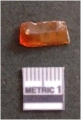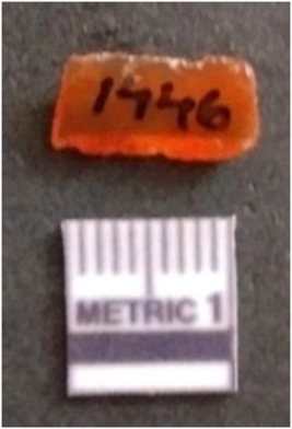 | Description / विवरण | This is a rectangular shaped chalcedony flake, retouched and flake scars seen on the surface. Bulb of percussion seen can be with ripples. |