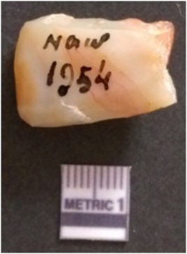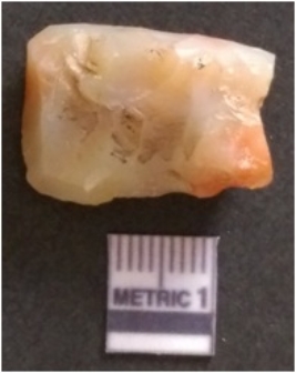 | Description / विवरण | This is an agate stone core, flakes had been removed from all over this piece. |