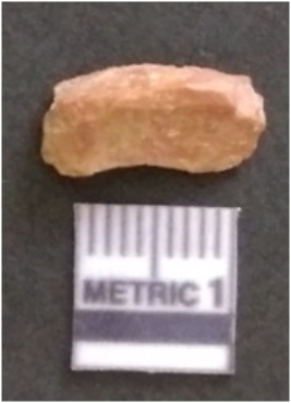 | Description / विवरण | This is a manufacturing waste of chert stone, an elongated rectangular piece with a curvature and bulb of percussion seen. |