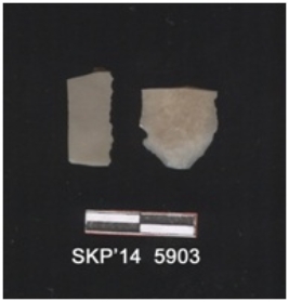 | Description / विवरण | Fragment of blade, indirect percussion, and bulb of percussion visible, errailure bulb-prominent, use-ware mark visible at the lateral edges. |