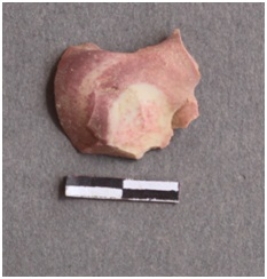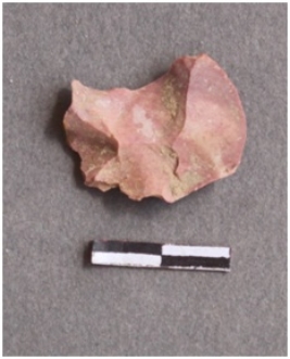 | Description / विवरण | The chert fragment is thin with bands of red and pink. |