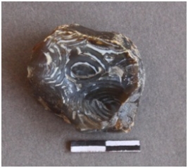 | Description / विवरण | This is a jasper with cortex on one side, banded ripples were formed lined by calcium deposit in between the lines. |