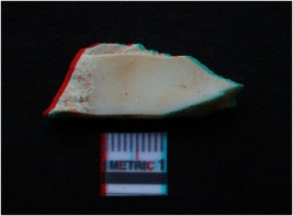 | Description / विवरण | The shell fragment is pale yellowish in color, with rough cut edges. The piece is a part of shell object manufacture debitage. One side of the piece is smooth owing to natural shell polish. The other side is coarse. |
