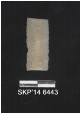 | Description / विवरण | Fragment of blade with use-ware marks on either side, there is a fracture on the dorsal side on the ridges. The cross section is parallelogram. |
