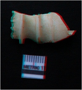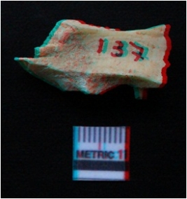 | Description / विवरण | The shell fragment is pale yellowish in color, with rough cut edges. The piece is a part of shell object manufacture debitage. One side of the piece is smooth owing to natural shell polish. The other side is coarse. |