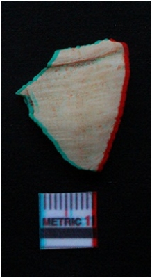 | Description / विवरण | The shell fragment is pale yellowish in color, with rough cut edges. The piece is a part of shell object manufacture debitage. One side of the piece is smooth owing to natural shell polish. The other side is coarse. |