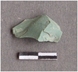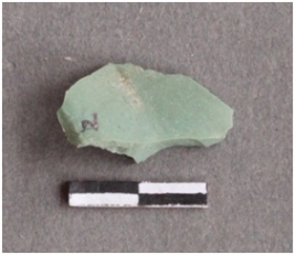 | Description / विवरण | Light turquoise chert flake with a bulk like bulb of percussion and flaked ridges. |