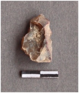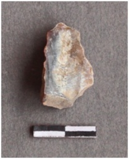 | Description / विवरण | This is a chalcedony fragment with cortex with surface deposit, banded with ferrous impurities. Translucent flaked ridges. |