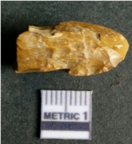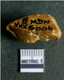 | Description / विवरण | The chert piece has angular flaked edges and prominent bulb of percussion. The piece is a cryptocrystalline piece with a regular fracture pattern. |