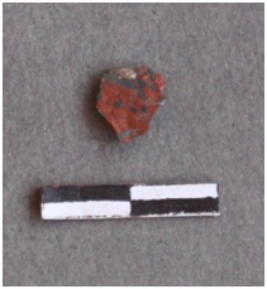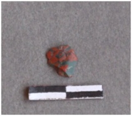 | Description / विवरण | Jasper striking platform with bulb on the ventral side. |