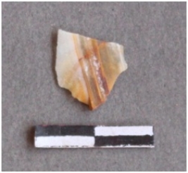 | Description / विवरण | Lithic debitage, flake of chalcedony with some ferric impurities. |