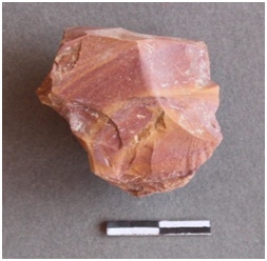 | Description / विवरण | Lithic debitage, agate nodule with cortex on both side banded on the surface. |