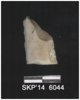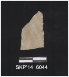 | Description / विवरण | Fragment of blade, indirect percussion, and micro-flaking has been seen on one lateral edge, the cross section is parallelogram. Use-ware marks on the other lateral. |