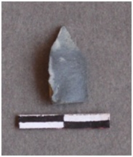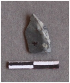 | Description / विवरण | Bounded chert with bulb of percussion flake with a small fraction of cortex. |