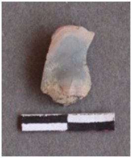 | Description / विवरण | Chert flake with bulb of percussion and a small fraction of cortex. |