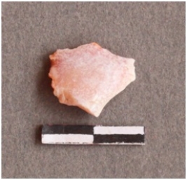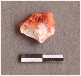 | Description / विवरण | This is a small fragment of carnelian with cortex; orange surface is due to ferric impurities. There is a bulb of percussion on other side. |
