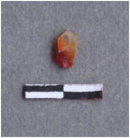 | Description / विवरण | Carnelian with ferric impurities, orange and reddish band. |