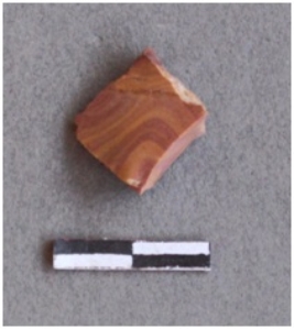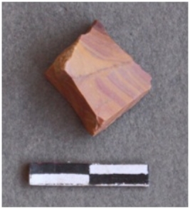 | Description / विवरण | It s a chert banded, flaked from the surface no striking platform or bulb on the ventral side. |