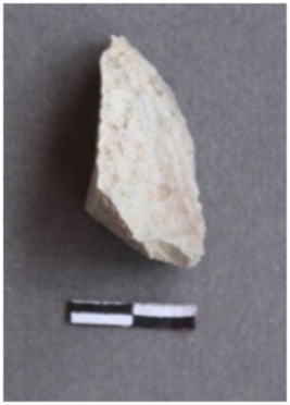 | Description / विवरण | It is chert flake, with sharp edges and flake ridges on the surface. |