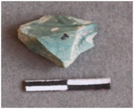 | Description / विवरण | Greenish chert with bulb of percussion and flaked ridges. |